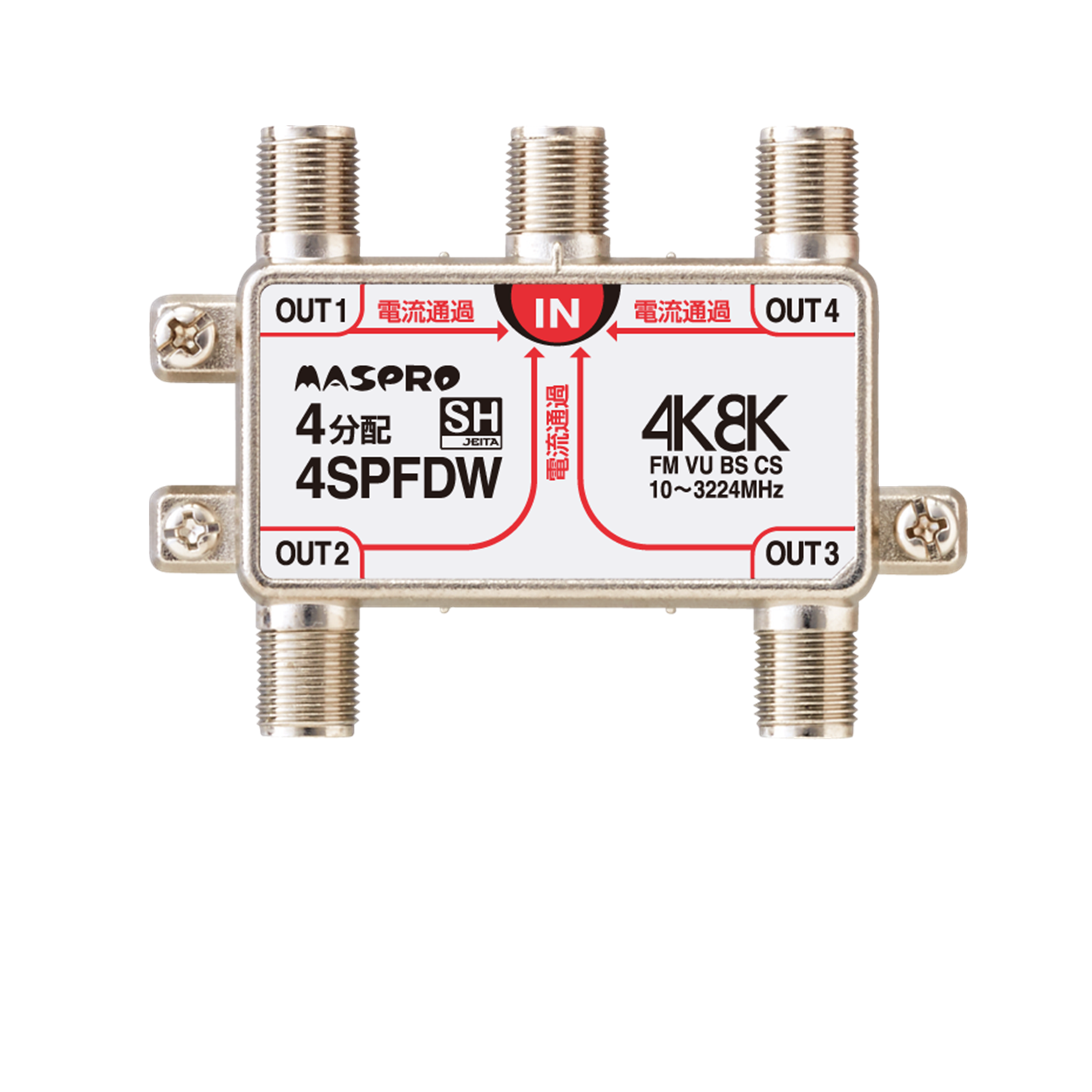 CATV・FM・VHF・UHF・BS・CS のテレビ信号を分ける全端子電流通過型の分配器です。