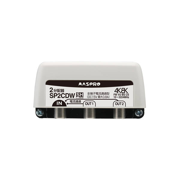 - 屋外用2分配器(商品名:SP2CDW)は、FM・VHF・UHF・BS・CS のテレビ信号を分配できる全端子電流通過型の2分配器です。