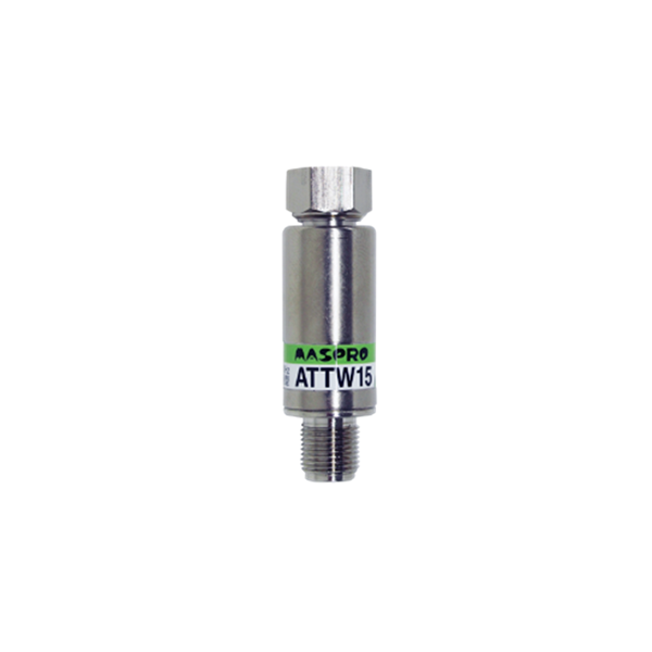 - シールド型減衰器(商品名:ATTW15)は、ブースターなどへの入力レベルが高い場合、適正なレベルに下げるために使用します。