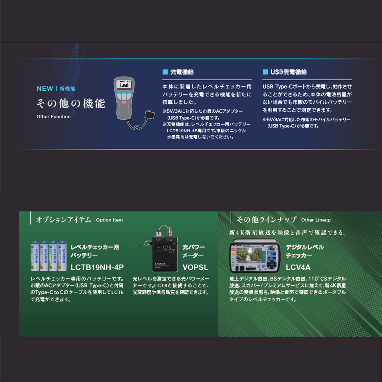 意ください。また、充電機能は別売のレベルチェッカー用バッテリーLCTB19NH-4P にのみ対