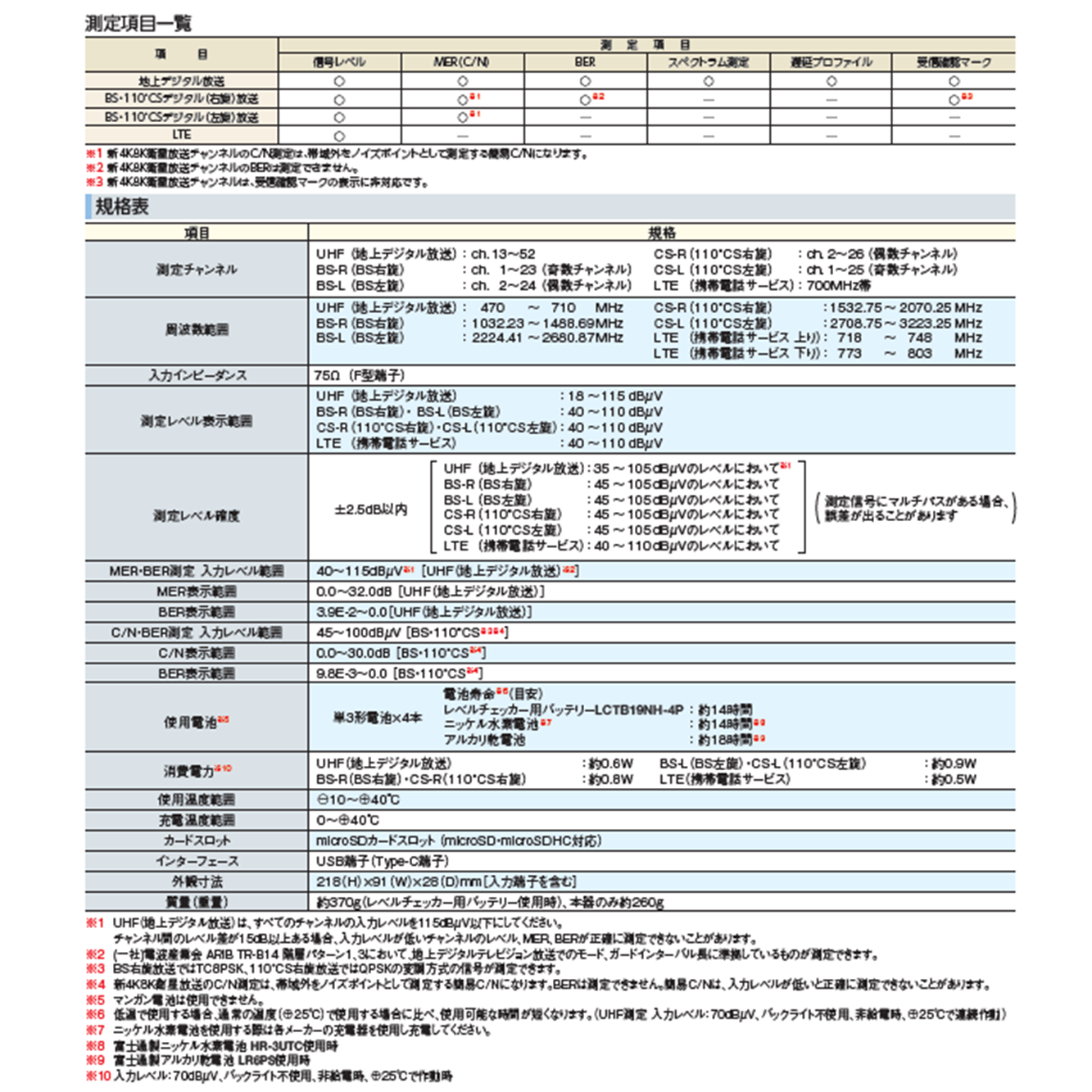 ります。(地デジ、BS 右旋・110 ゚ CS 右旋測定については、必須となります)
