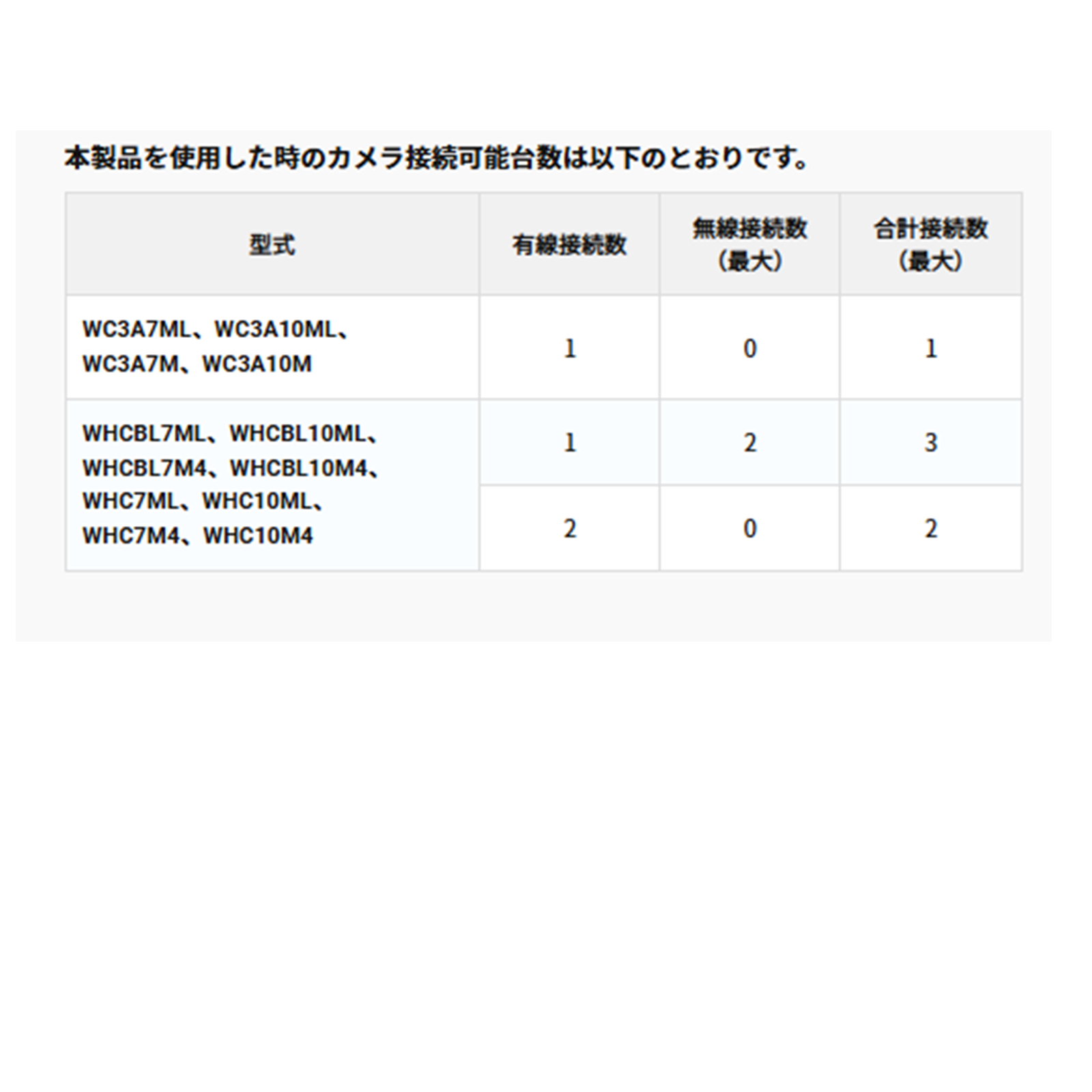 接続するモニターによってカメラの合計接続台数が異なります。