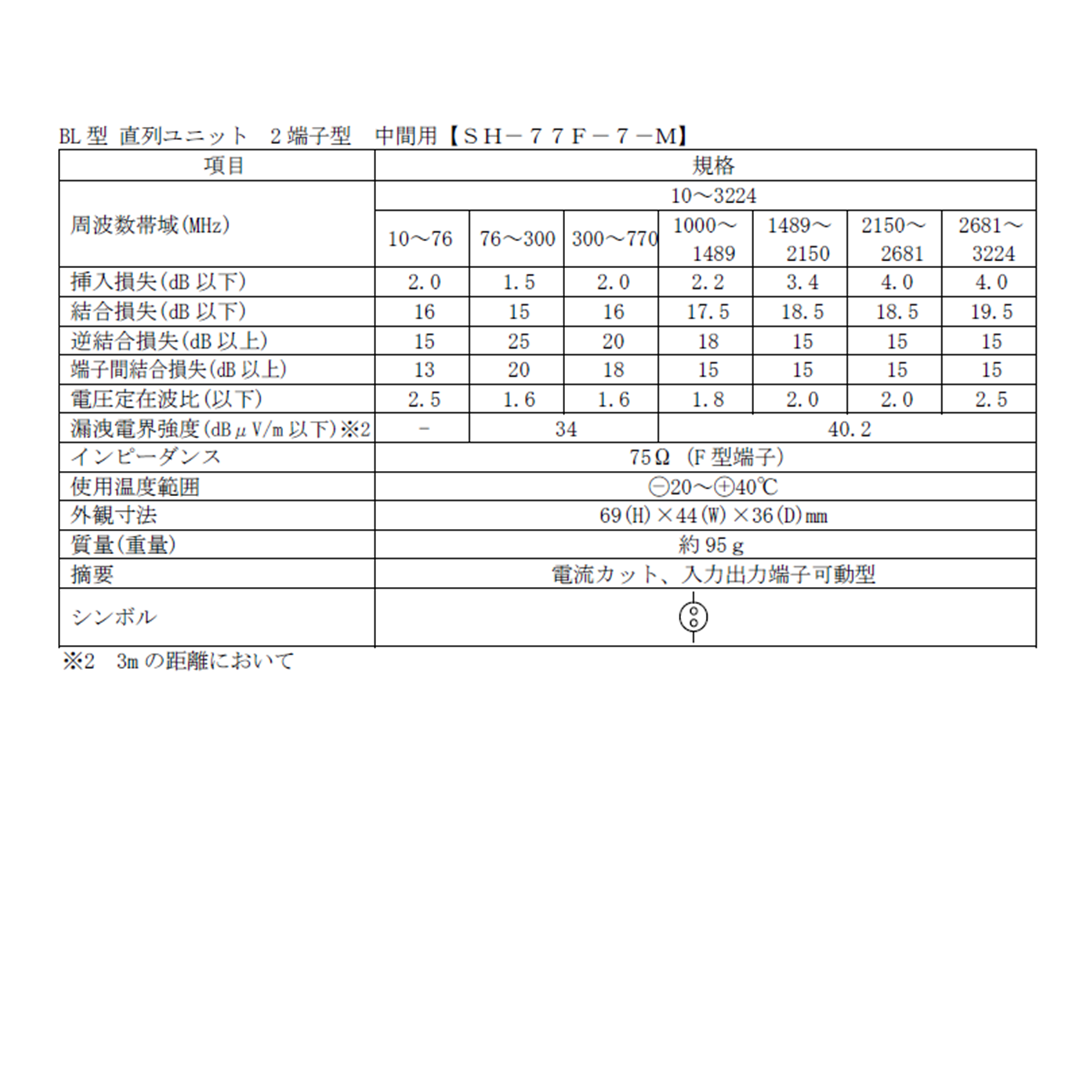 CATV・FM・VHF・UHF・BS・CS のテレビ信号を伝送する壁面埋込・シールド型 直列ユニットです。