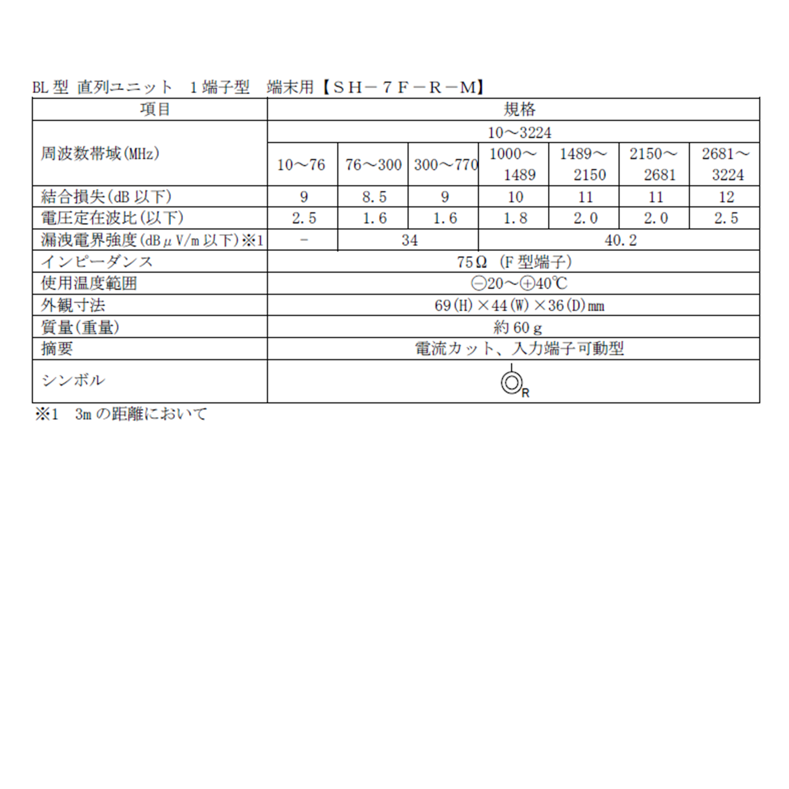 CATV・FM・VHF・UHF・BS・CS のテレビ信号を伝送する壁面埋込・シールド型 直列ユニットです。