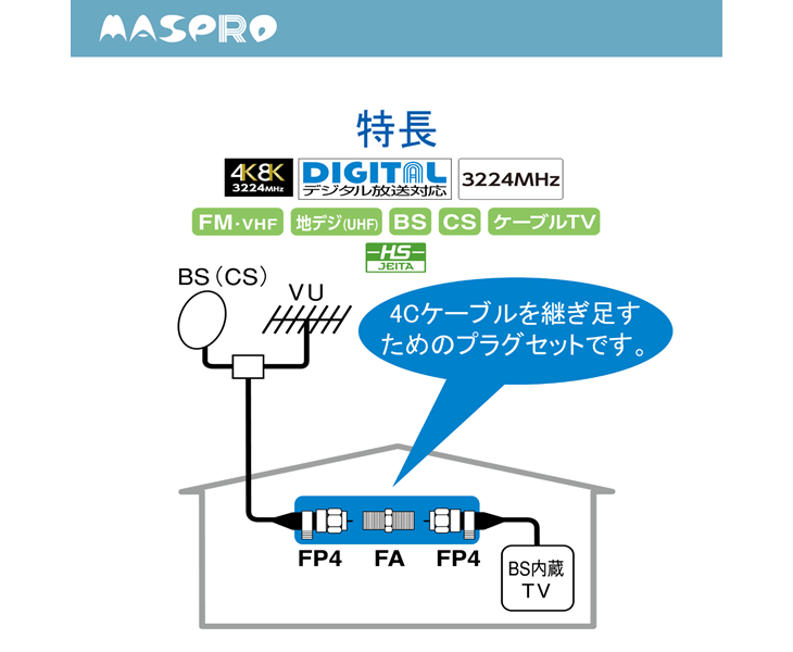 マスプロ電工公式オンラインショップでは、お客様の当サイト利便性向上のため、クッキー(Cookie)を使用しています。当サイトをご利用いただく場合、クッキー(Cookie)ポリシーをご確認してください。